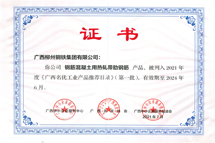 廣西名優(yōu)工業(yè)產(chǎn)品證書